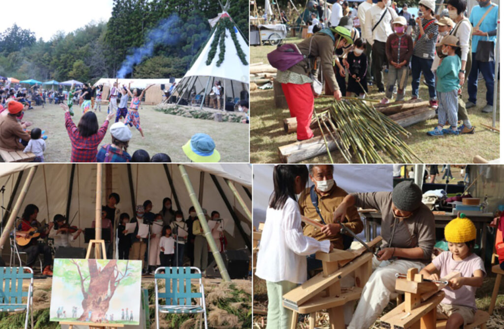 陶芸や染織、木工などのクラフト体験、ジビエや有機野菜を使ったごはん、世界各国のライブパフォーマンス、夜の焚き火や映画上映まで、五感で楽しむコンテンツが満載。大人も子どもも、忘れかけていた創造の喜びと、豊かな自然への感謝を思い出せる場です。
