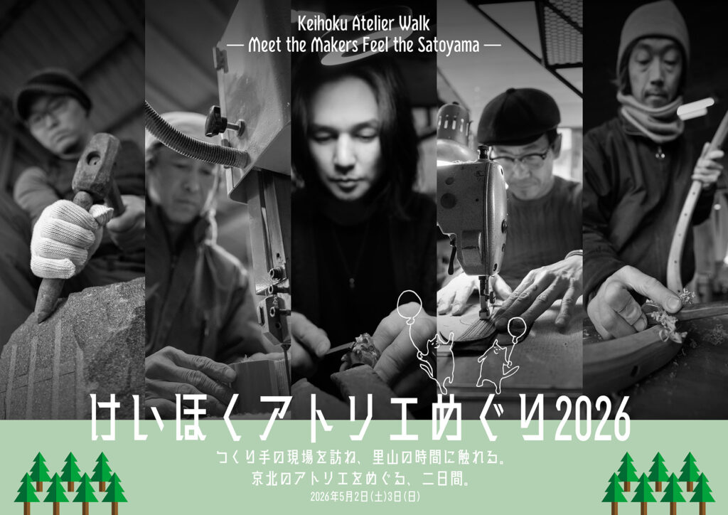 作品を見るだけでなく、制作の空気を感じ、作家と直接言葉を交わし、京北の風景とともに記憶に残る時間を過ごしてほしい。観光でも展示会でもない、「訪ねること」そのものが体験になる二日間です。